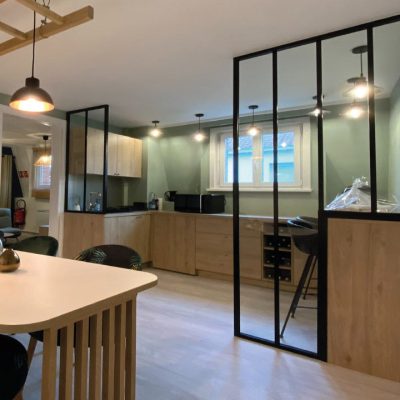 Le verre par sa facilité d’entretien permet une très bonne hygiène dans une cuisine en plus de son esthétique et du choix de couleur, en verre brillant ou mat. Il s’agit donc d’un matériau idéal pour des étagères ou pour une table de cuisine. Enfin une verrière d’intérieur ou verrière d’atelier peut permettre de séparer astucieusement le coin cuisine tout en laissant passe la lumière.
