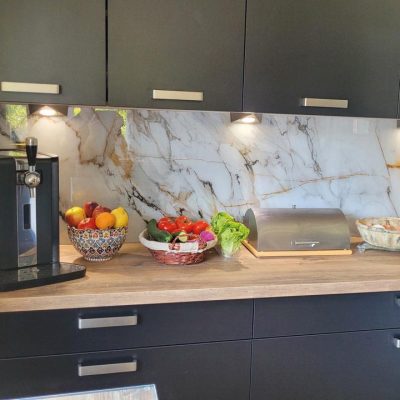 D’autres clients ont choisi un décor sur mesure via l’impression numérique sur un verre trempé, avec un résultat unique et adapté à leur décoration.
